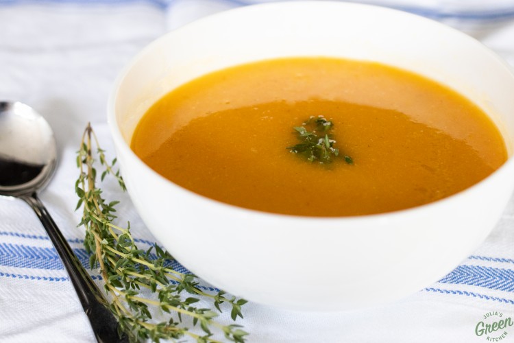 Peel and cut onion in 2 halves. Add to the butternut squash on the baking sheet. Take it out of the oven after about 10-15 minutes or when caramelized and soft.