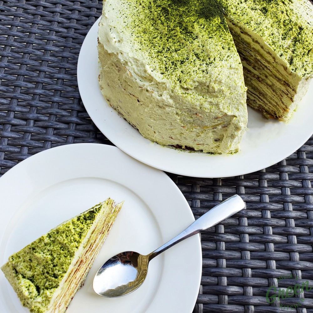 How about a cake that is not only yummy, sweet and delicious but also high in antioxidants1,2 and enhances brain function3? Knowing how much I love trying new and interesting things, my husband brought me a slice of matcha cake from one of his trips to New York and I was hooked instantly. I simply had to make it myself. After a few test runs my kids now specifically request it when they haven't had it in a while. Now anytime we have it while company is over they ask for the recipe as well. This cake is the most requested thing for potluck parties. It's so light and fresh, not very sweet and doesn't leave you feeling like you've just swallowed a brick and need to call it a day.I use organic raw A2 heavy cream that I buy from a local farm and it literally only takes a minute to whip. (I've made the mistake of beating it in a standing mixer for a longer time that usually takes a conventional store-bought heavy or heavy whipping cream to prepare and was left with a sweet blob of butter in my possession. Not the recipe I was going for at the time.) So if raw unpasteurized dairy is what you're using, adjust the time accordingly and don't take your eyes off that mixing bowl. It won't take long. But I realize it might be difficult to get access to fresh A2 cows' cream so I adjusted the whipping time to that of a conventional heavy cream. I use maple syrup for the crepes and the cream but you can use any sweetener of your choice. As far as the recipe goes, I suggest adding about 1/2 cups of sweetener powder to the batter and 3/4 cups to the heavy cream instead of maple syrup. I've made this cake many times with different types of gluten-free flours. I always read the ingredients label and make sure there is no xanthan gum added. I've also made it with my gluten-free flour mix and it worked great. The world is your oyster!If you're planning on making other dishes or just pressed for time, here's a time management tip, the crepes can be made up to 2 days in advance, properly wrapped, and refrigerated. You can whip up the cream whenever you're ready to serve and it tastes just as good. This cake tastes best when eaten the same day it's made. Wrap the leftover cake properly and refrigerate.