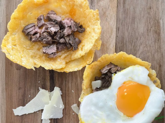 Parmesan cheese bowls are incredibly easy to make and add a creative touch to your table. They’re a great addition to your recipe collection, whether you follow a carnivore, keto, or any other diet; or if you don’t follow one at all. Parmesan is the top choice for this recipe, but any hard cheese will work well. Cheddar, Manchego, or Asiago make excellent alternatives. Avoid using soft cheeses, as they will simply melt and won't firm up properly, and we need our bowls to hold shape. Shaved or shredded cheese works well, but be sure to spread it into a circle and press it down slightly on a parchment paper before baking.These bowls are perfect for serving your favorite salads, ground meat, eggs, and pretty much anything a bowl can hold. This recipe yields a smaller-sized bowl, but you can easily adjust the size by adding more cheese and using a smaller or larger bowl to shape the Parmesan to your desired size.Enjoy! Your fork is waiting!